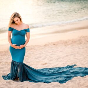 The Karina dress is made from a sheer unlined embroidered hand dyed in a lighter shade lace bodice with slight stretch and a chiffon skirt. The sleeves are 3/4 length with scallop edging. The chiffon skirt portion flares out into a full circle at the bottom and features a gathered front. The dress has a high scoop neckline and elastic under the bust to help accentuate the curves from belly to bust.