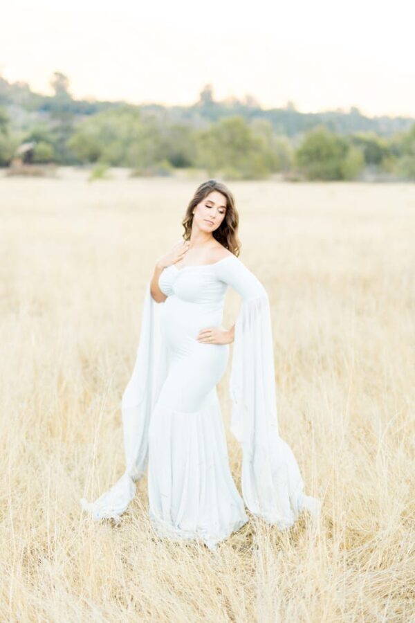A stunning form fitted elegant gown made with luxe jersey and gorgeous unique belle chiffon sleeves. The dress hugs your beautiful curves until the hips then showers down with a beautiful chiffon bottom. The most perfect dress for any photoshoot or special event.