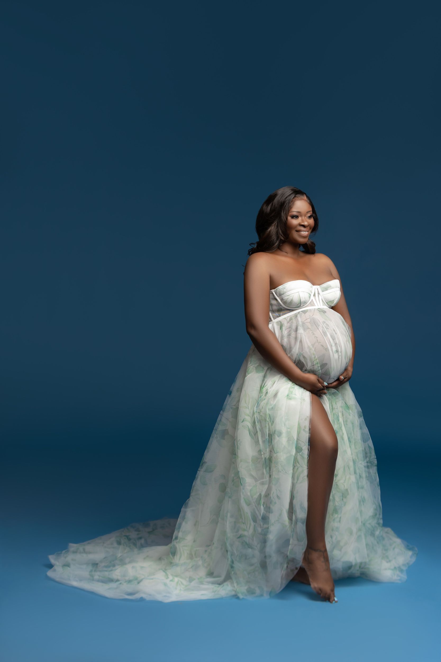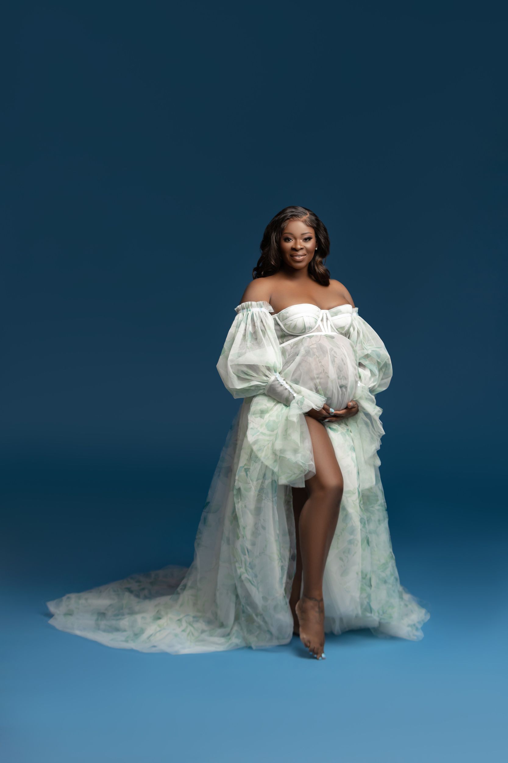 Muse is a gorgeous sheer floral gown! Perfect for any Maternity Photoshoot!