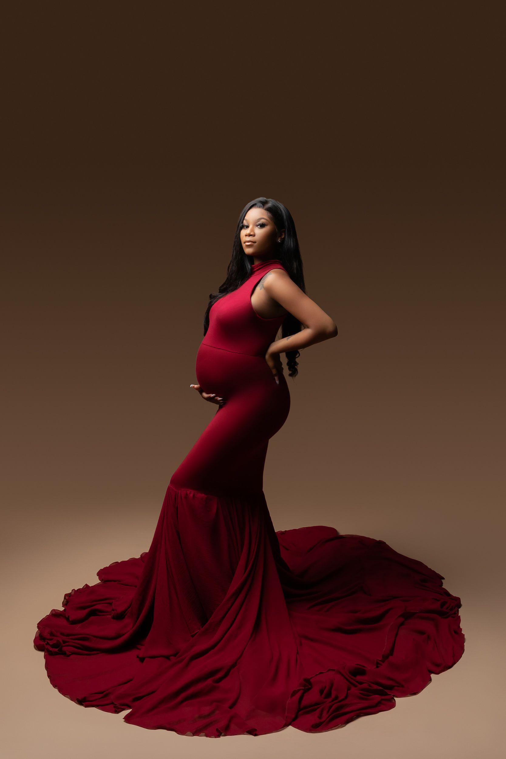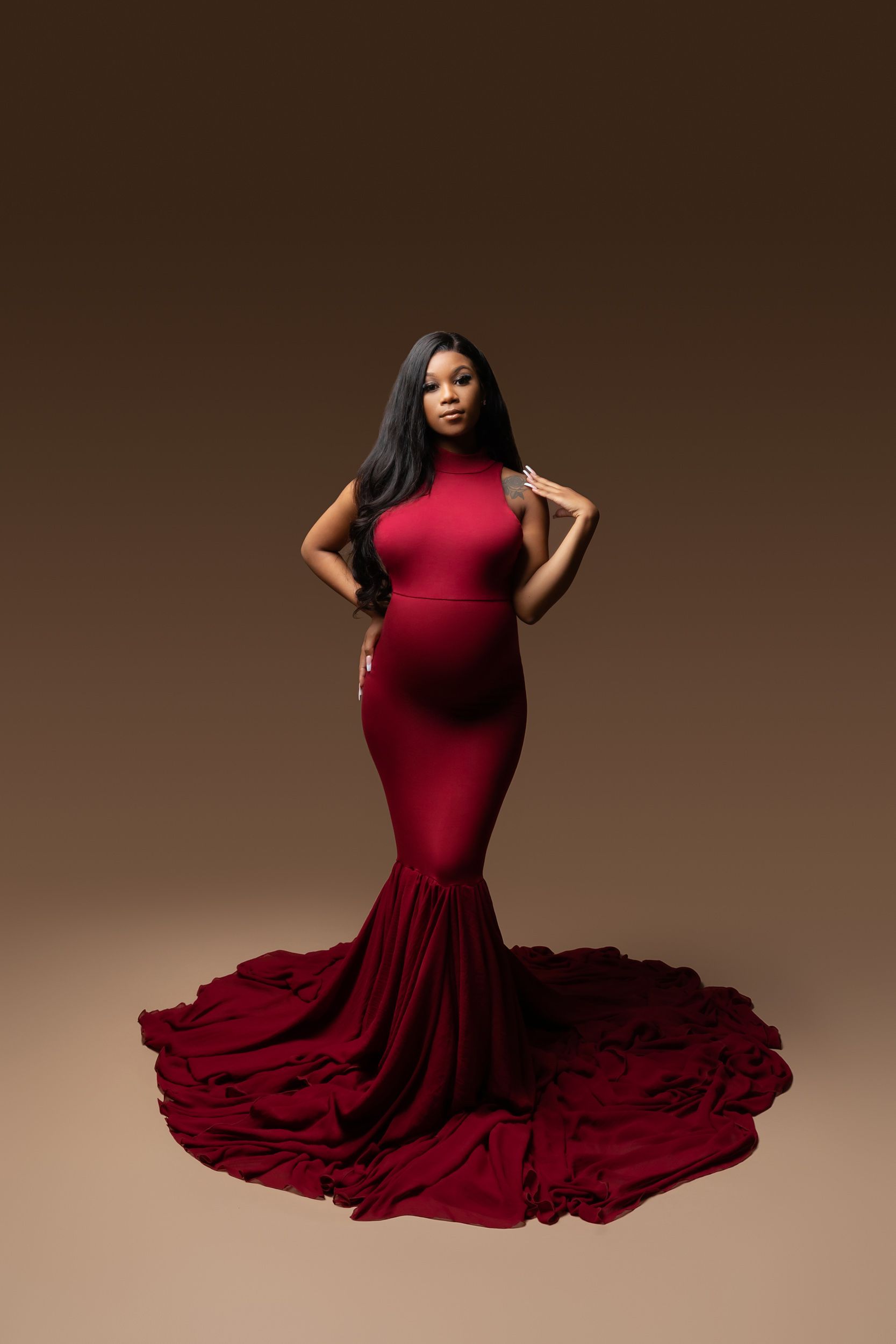 Sleek and demure Persephone has it all. Smooth and fitted bodice made from soft stretch jersey paired with layers of cascading chiffon. The chiffon files and flutters as you walk creating a soft fluid drape. Look and feel your best!