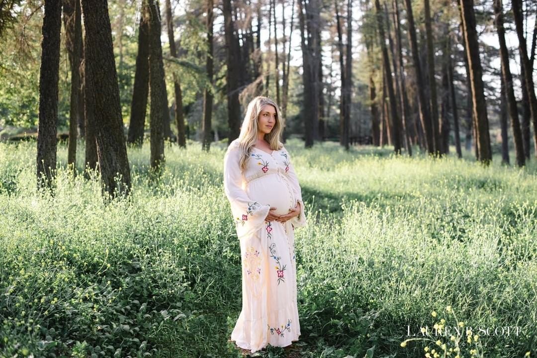 A beautiful hand cut embroidered long sleeve button down dress is perfect for any photoshoot or baby shower.